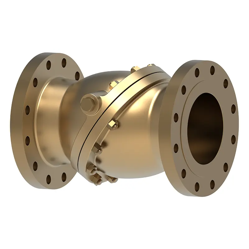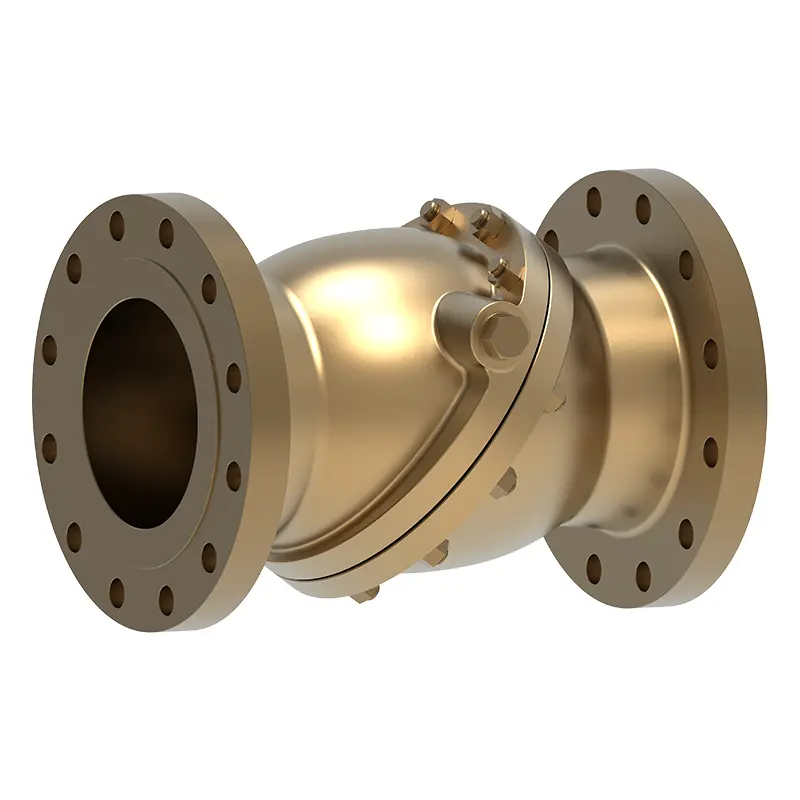 Ventil za provjeru nagnutog brončanog diska prihvaća nagnutu strukturu diska kako bi postigao jedan način kontrole tekućine. Izrađena je od otporne na habanje, korozijsku otpornu i broncu visoke čvrstoće. Pogodan je za cjevovodne sustave koji imaju visoke potrebe za stabilnošću protoka tekućine i trebaju izbjegavati čekić s vodom, poput rashladnih sustava neke precizne opreme, vodenih sustava za opskrbu visokim zgradama, te utičnice za opskrbu i vodovod i odvodnju s vodom ili uljem kao medijem.