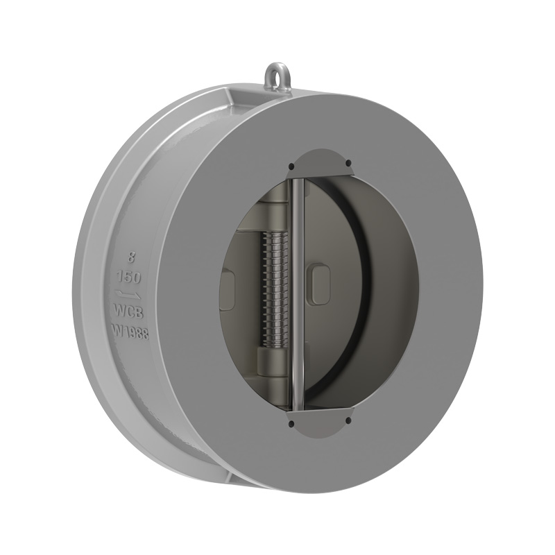 Kada se brzina protoka uspori, pod djelovanjem sile reakcije torzijske opruge, disk se postupno približava sjedištu ventila i ulazi u fazu sporog zatvaranja ventila. Kada tekućina teče natrag, njena sila na disk i sila reakcije torzijske opruge djelovat će zajedno, a zatvaranje diska će se povećati u skladu s tim, ulazeći u fazu brzog zatvaranja. Svrha ovog dizajna je smanjiti fenomen vodenog udara, smanjiti štetu od vodenog udara i bolje produžiti životni vijek. Prilikom zatvaranja, točka sile opruge uzrokuje prvo zatvaranje vrha diska, sprječavajući zagriz korijena i poboljšavajući izdržljivost površine za brtvljenje ventila.